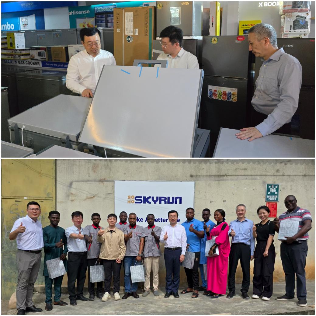 李明一行实地走访了拉各斯销售大区,深入经销商门店,详细询问产品销售、市场占有率及竞品情况。随后,重点考察了拉各斯大区办事处、仓库及售后服务中心,详细了解SKYRUN家电产品的销售情况,并亲切慰问了一线员工,送上消暑用品,传递苏豪控股集团关心。